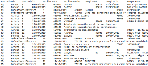 Il contient l’ensemble des données comptables et des écritures retracées dans tous les journaux comptables au titre d’un exercice. Les écritures y figurant doivent être classées par ordre chronologique. Chaque écriture y figurant doit reprendre l’ensemble des données comptables figurant dans le système informatisé de l’entreprise, les 18 premières informations doivent obligatoirement correspondre, dans l’ordre, aux informations suivantes :