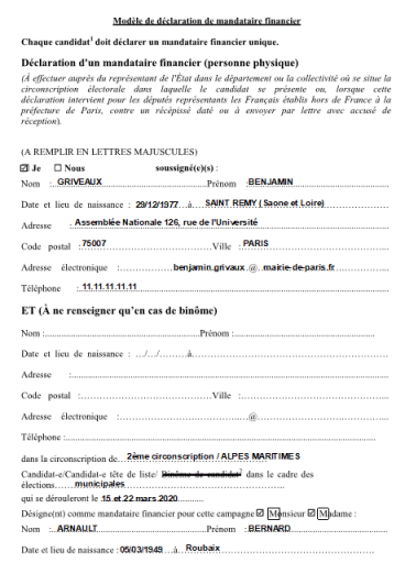 Documents pour la CNCCFP Modèles designation MF et AFE Cette édition fusionne également les informations du paramétrage avec la fiche de la tête de liste et du mandataire financier.