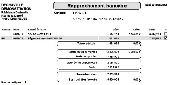 Il est ensuite possible d'imprimer ce rapprochement avec la liste et les soldes :