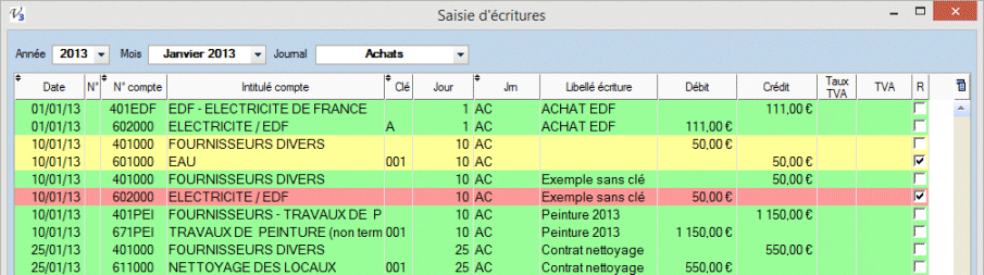 Attention !!! La saisie est toujours faite pour un mois et un journal donnés, soyez très vigilant sur le mois, en cas d'erreur à ce niveau il n'y a pas d'autres solutions que de supprimer et repasser les écritures dans le bon mois OU d'aller modifier les écritures dans l'écran Consultation et Exports…